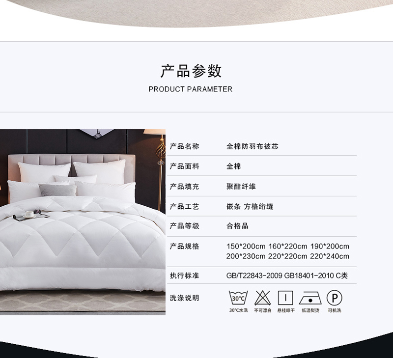 莫凡生产宾馆民宿布草全棉防羽布被芯酒店羽丝绒羽丝棉被子批发