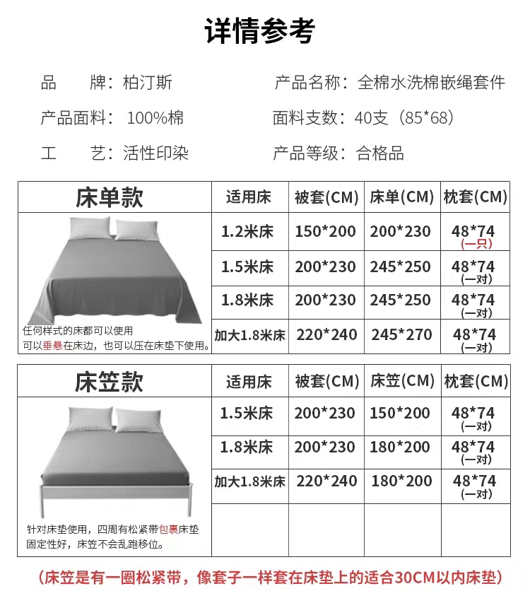 • 规格:1.2m床单款三件套