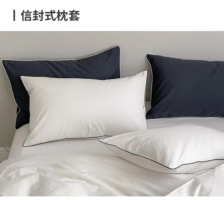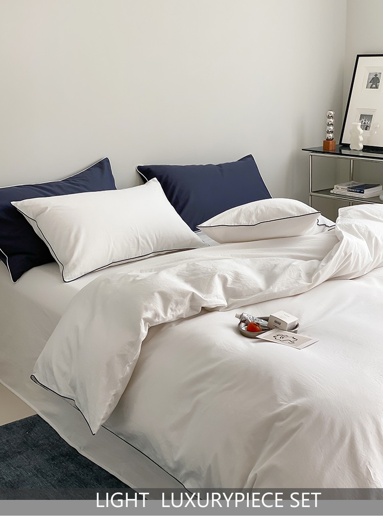 莫凡生产酒店宾馆床品民宿纯棉水洗棉四件套嵌绳滚边纯色学生被套