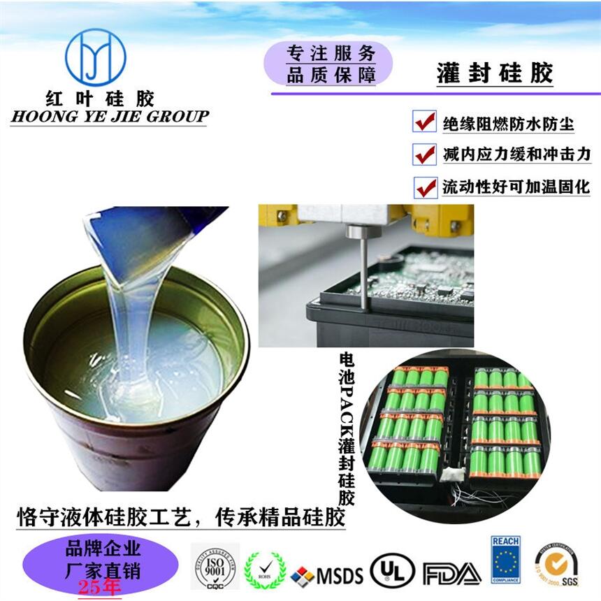 各个新能源锂电池生产厂家为解决此问题,花费大量的人力、时间研发、测试,现在主流方法还是采用新型材料来辅助锂电池工作,起到导热、耐高温、阻燃、减震、防水、防潮作用。在众多新型材料中液体有机硅灌封胶由于其具有良好的物理及化学惰性,作用于锂电池pack环节,可以很好的起到导热散热、均衡温度、阻燃防爆、绝缘防水等作用,有机硅胶被看做是提升动力电池安全性“新希望”。液体硅胶的导热系数可做到2以上,阻燃性可达UL94V0,防水性可达IPX7级,用作灌封填料非常合适。