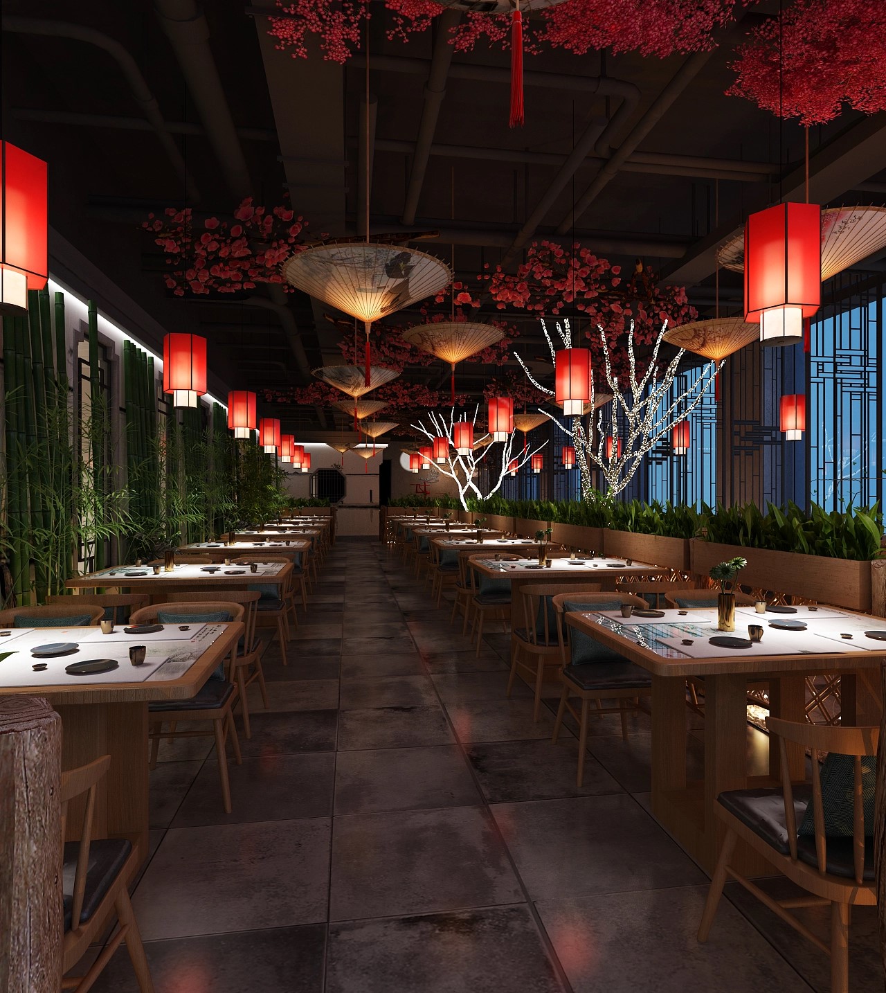 装饰元素:中餐厅的装饰元素应该以传统文化和艺术为主,如传统画、书法、陶瓷、造景等。这些元素可以营造出浓郁的文化氛围,让顾客在用餐的同时感受到传统文化的魅力。