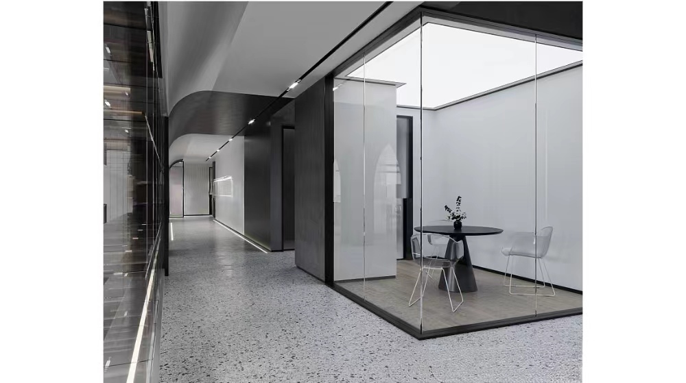 通过以上装修设计中的细节打造出简约黑白灰风格的办公空间,展现出大气而优雅的氛围。这样的办公环境不仅能够提升员工的工作效率,还能彰显公司的形象和审美品味。