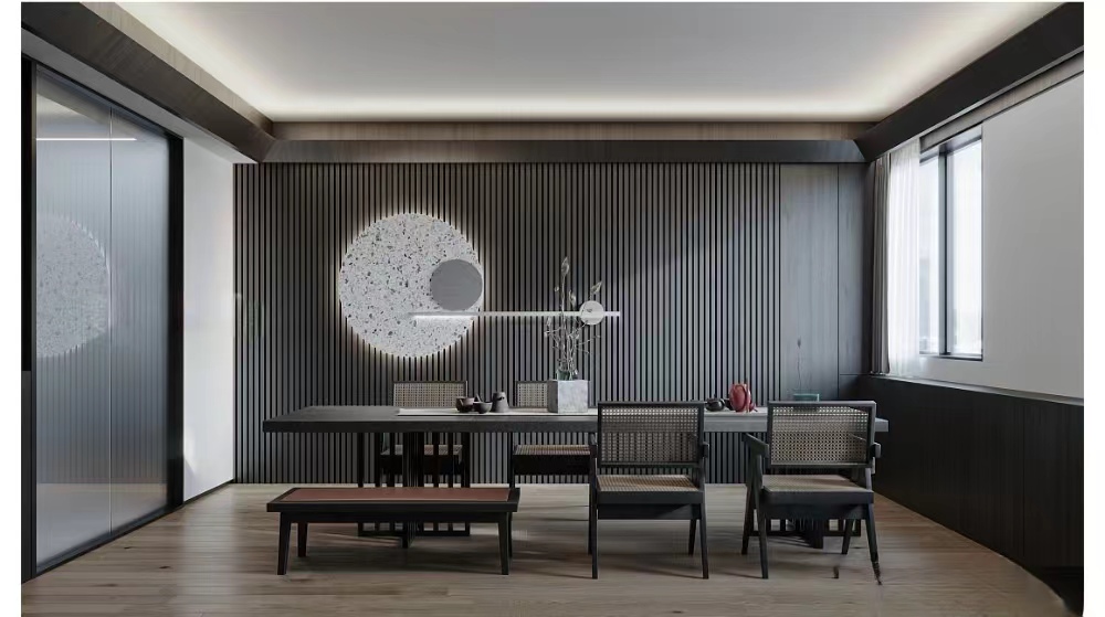考虑使用石材、金属和玻璃等材质,这些材质具有质感和光泽度,与黑白灰的色调相得益彰,能进一步提升空间的优雅感。