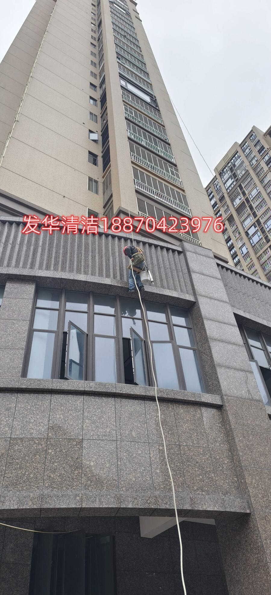 • 生产工艺:泉州市发华清洁服务有限公司的方式介绍1、方式是用吊绳、吊板将人吊到工作位置进行清洗。这种声式比较简单,成本也低,只要工人身体素质好、绳子连接牢固就可以进行,一般的大楼都可以用这种方式进行清洗,但是这种方式的操作必须使安全措施到位,否则危险性很大,造成伤亡事故的都是因安全措施不到位造成的
