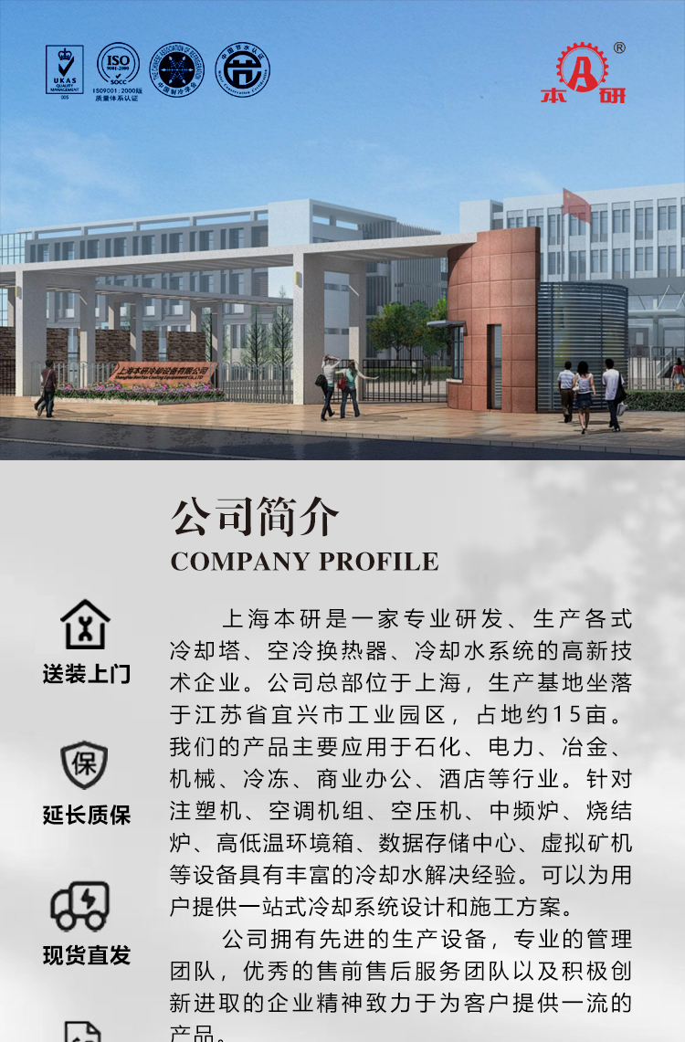 镀膜机配套用本研逆流式圆形冷却塔玻璃钢外壳BY-R凉水塔
