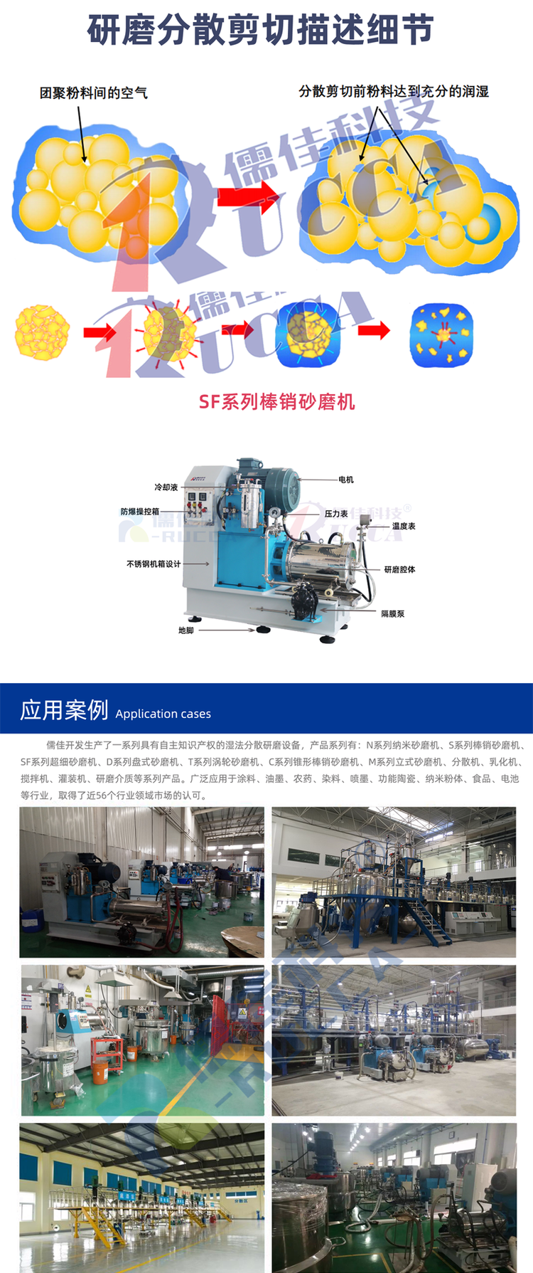 广泛应用于数码印刷油墨、溶剂油墨、水性油墨、汽车漆、工业涂料、颜料、色浆、及纳米材料的分散研磨。