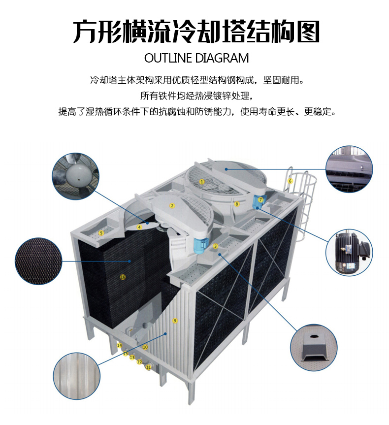 热水和空气流动方向 | 逆流式冷却塔 | ||