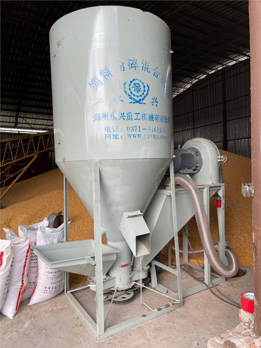 郑州永兴重工机械生产的立式饲料粉碎搅拌机;这是为农村饲养户、小型饲养场、中小型配合饲料厂设计的小型饲料加工设备,同样也可以搅拌腻子粉、化工原料等。集垂直提升、混合仓、水平输料为一体;饲料粉碎搅拌一体机具有结构简单紧凑、一次性小投资、经济实用、维修方便,不需特殊生产场地等优点饲料搅拌机由下方进料口加入需要混合的物料,由饲料搅拌机内的提升螺旋将搅拌物料从立式搅拌机的进料斗进入立式螺旋输送器,向上提升到达顶端后,再以伞状飞抛,从混料筒四周下落,从套筒底部的缺口处重新进入立式螺旋输送器,再次向上提升,如此循环搅拌混合直到混合均匀,打开出料口将物料卸出。