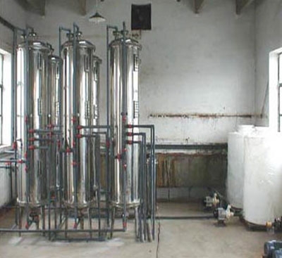 ? ?特点:所谓混床,就是把一定比例的阳、阴离子交换树脂混合装填于同一交换装置中,对流体中的离子进行交换、脱除。由于阳树脂的比重比阴树脂大,所以在混床内阴树脂在上阳树脂在下。一般阳、阴树脂装填的比例为1:2,也有装填比例为1:1.5的,可按不同树脂酌情考虑选择。 ????混床也分为体内同步再生式混床和体外再生式混床。同步再生式混床在运行及整个再生过程均在混床内进行,再生时树脂不移出设备以外,且阳、阴树脂同时再生,因此所需附属设备少,操作简便,具有以下优点: ????(1) 出水水质优良,出水pH值接近中性。 ???(2) 出水水质稳定,短时间运行条件变化(如进水水质或组分、运行流速等)对混床出水水质影响不大。 ???(3) 间断运行对出水水质的影响小,恢复到停运前水质所需的时间比较短。?