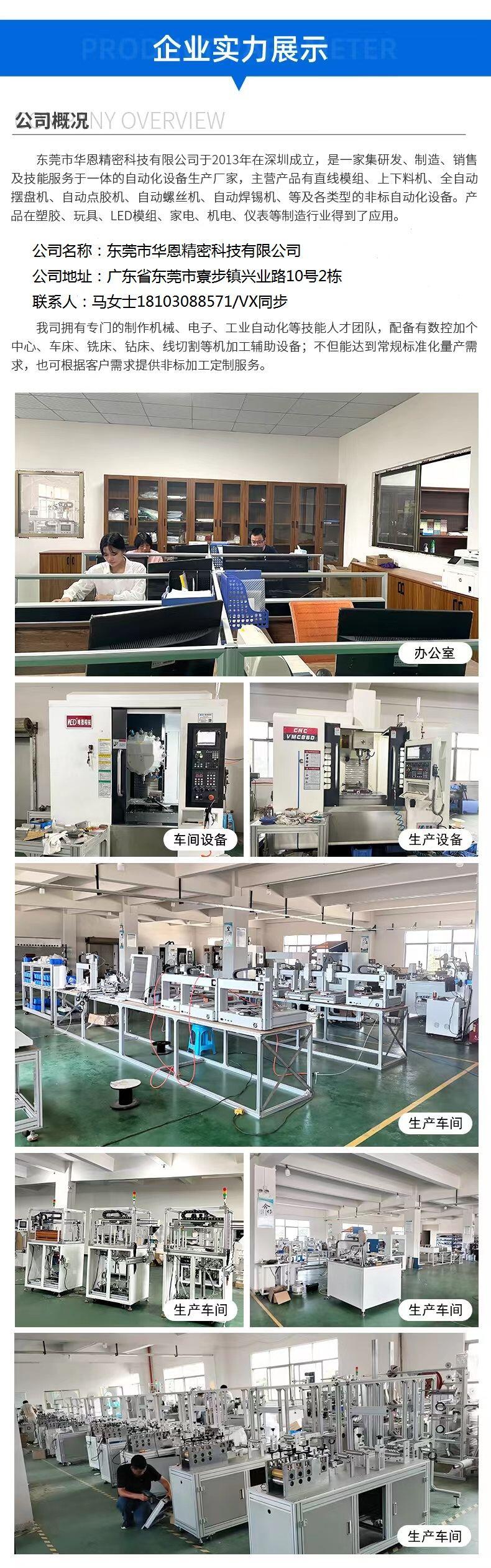 公司经营范围:研发、生产、销售、非标自动化设备,包含自动点胶机,自动焊锡机,自动螺丝机,自动摆盘机,自动输送机,上下料机以及直线模组研发精密配件,货物或技术进出口。