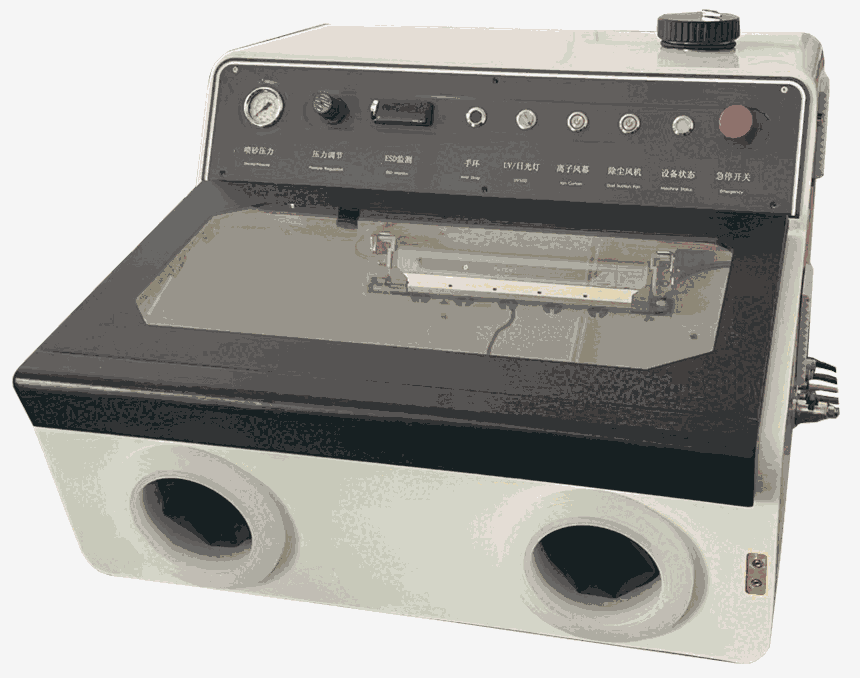设备分为操作腔及底部微粒收集回收负压腔体两部
