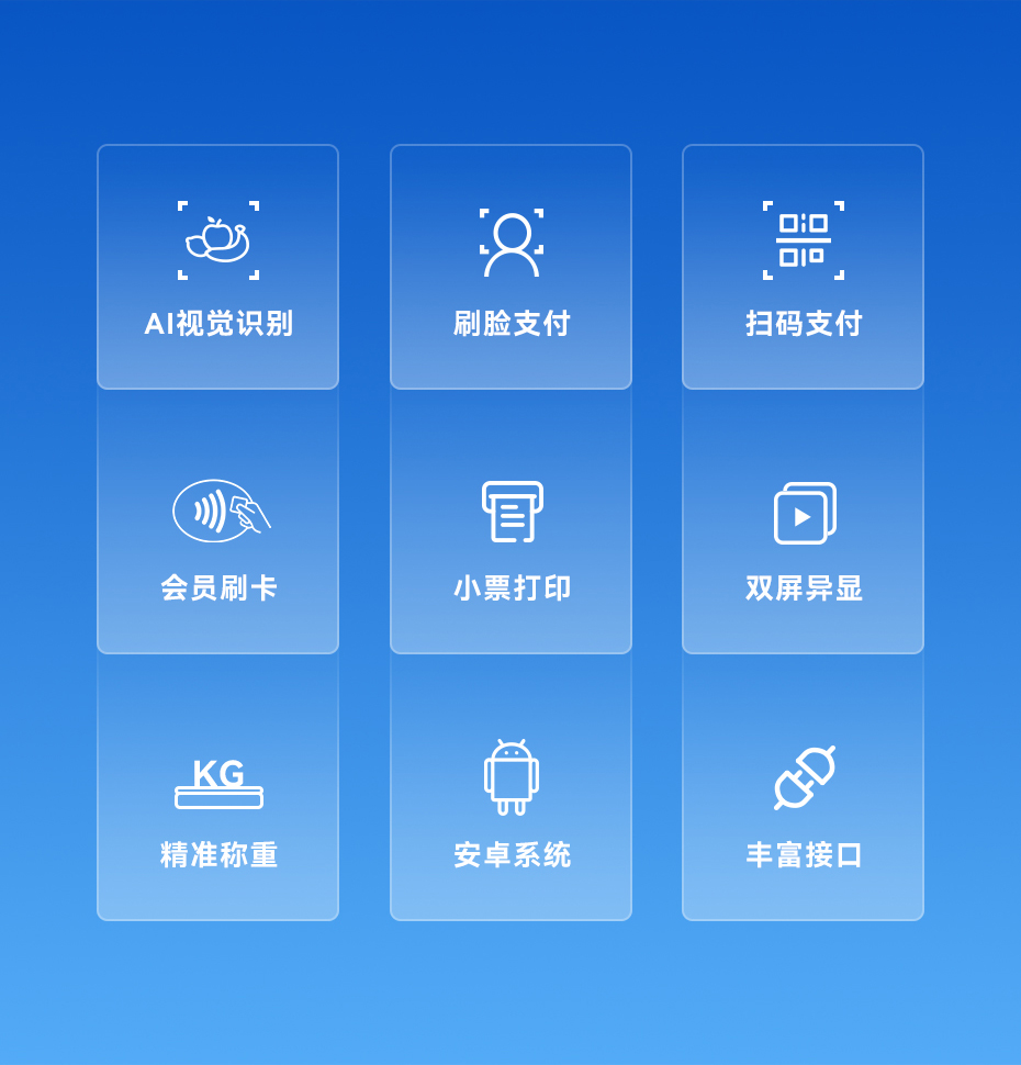 天波AI自助收银秤C50A不但在硬件上进行了大大简化,把刷脸支付、扫码支付、会员刷卡、小票打印和精准称重等功能高度集成,还加入近年来的AI热潮,利用AI算力使收银秤效率和自助程度翻几倍,对菜品的识别时间缩短至0.3s内,效率提升超过3倍,节省结账排队时间,提高用户结算体验。天波智慧行业满足行业用户的二次开发需求,免费提供SDK接口,帮助进行应用开发,快速构建自己的设备产品。
