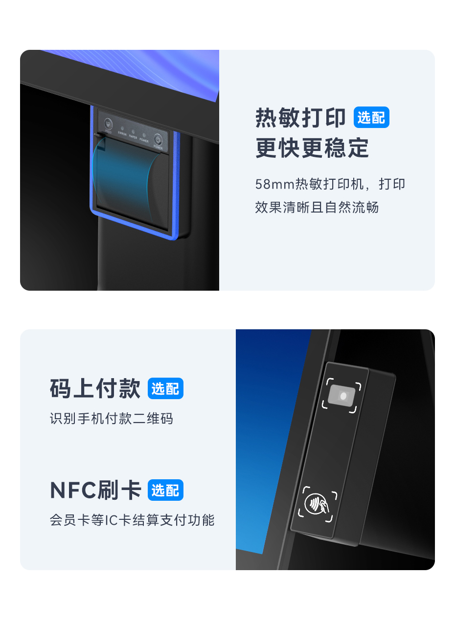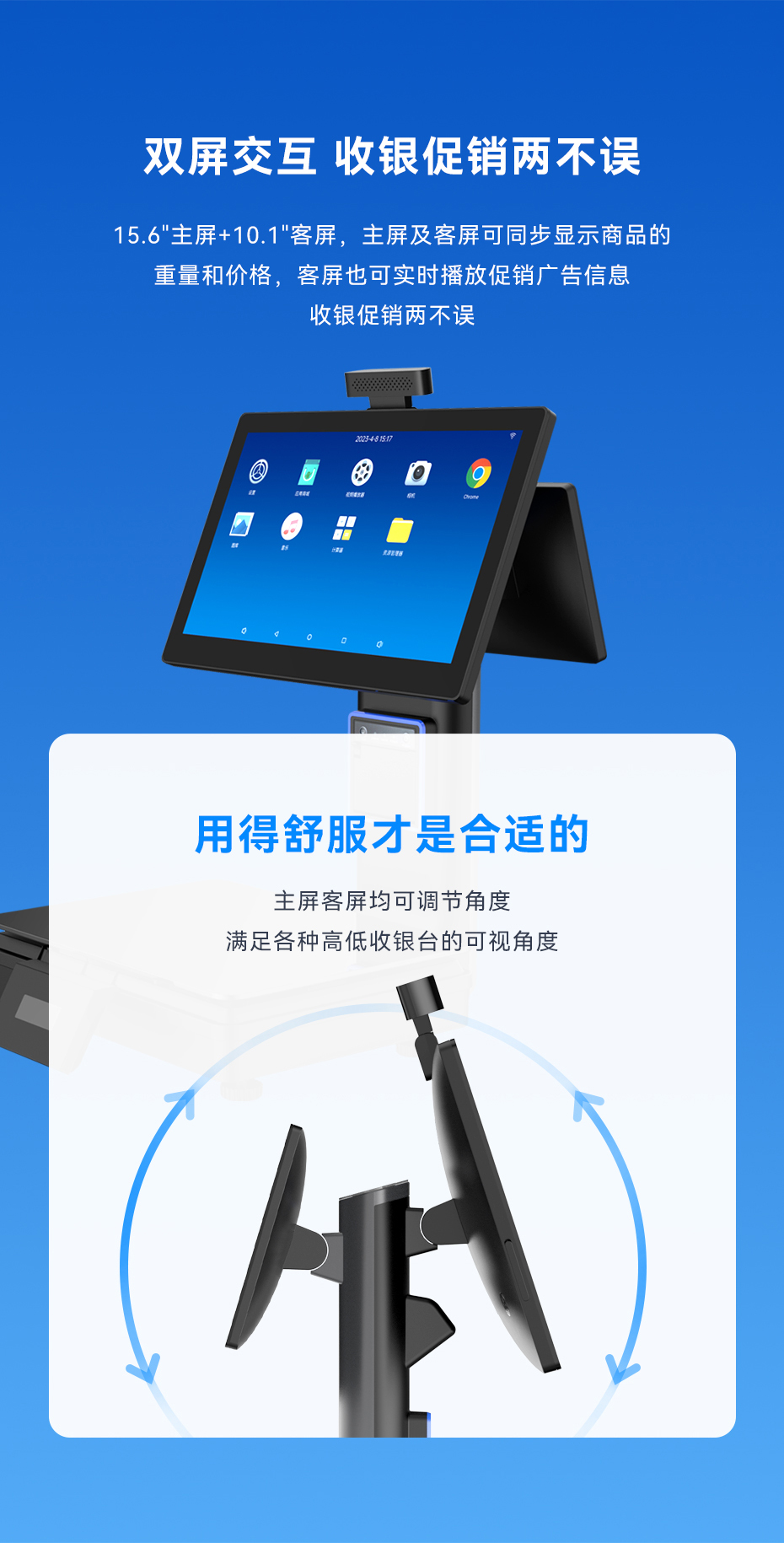 天波零件AI识别一体称C50A双屏交互,收银促销两不误,15.6"主屏+10.1"客屏,主屏及客屏可同步显示商品的重量和价格,客屏也可实时播放促销广告信息,收银促销两不误主屏客屏均可调节角度,满足各种高低收银台的可视角度,不管是收银员还是客户都看得舒服用得舒服。
