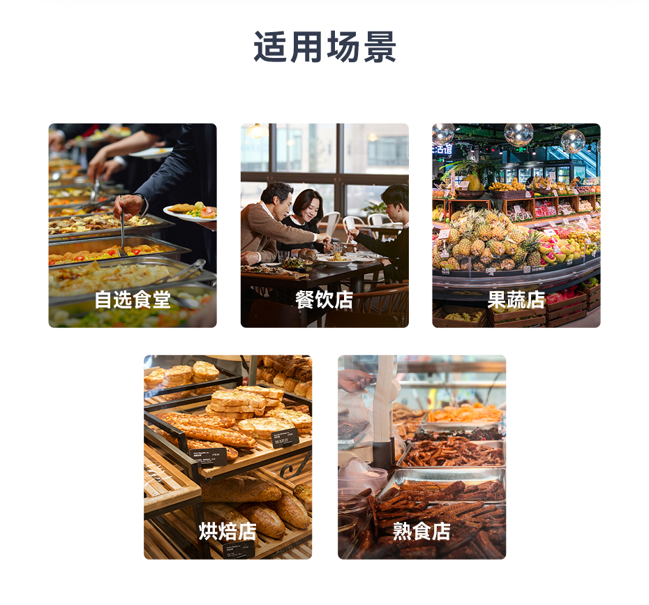天波AI识别收银秤C50A利用科技赋能,将“AI算法+称重”完美一体融合,采用屏下AI识别摄像头,识别精度高、识别速度快,即使带包装袋也能识别,对菜品的识别时间缩短至0.3s,配合自动称重,整体效率提升超过3倍,大大缩短顾客的排队时间,节省人工投入,帮助线下商超提升顾客购物体验。