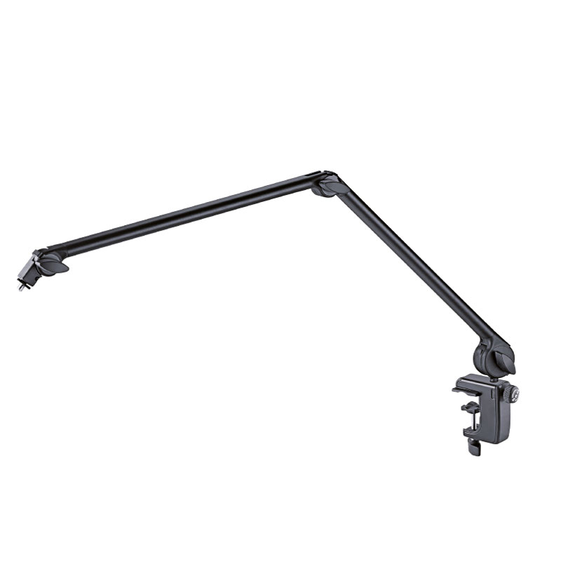 特别之处: 包括四个电缆夹,重量: 1.2公斤,螺纹连接: 3/8" 和 5/8",夹紧范围: 10 至 51 毫米 / ? 15 至 ? 51 毫米,长度: 460 至 960 毫米,材料: 铝、钢承载量: 1.5公斤这款值得信赖的麦克风臂采用 3/8 英寸或 5/8 英寸螺纹连接,采用精美的设计和创新的桌夹,可在工作室或多媒体工作站中速度适宜灵活地对齐麦克风。重达 1.5 公斤的麦克风可以轻松地固定在任何位置。该夹具的夹紧范围为 10 至 51 mm/? 15 至 ? 51 mm,提供多种紧固选项。稳定的金属框架配有品质优良塑料嵌件和滑支撑,可确认牢固而有力的夹紧。