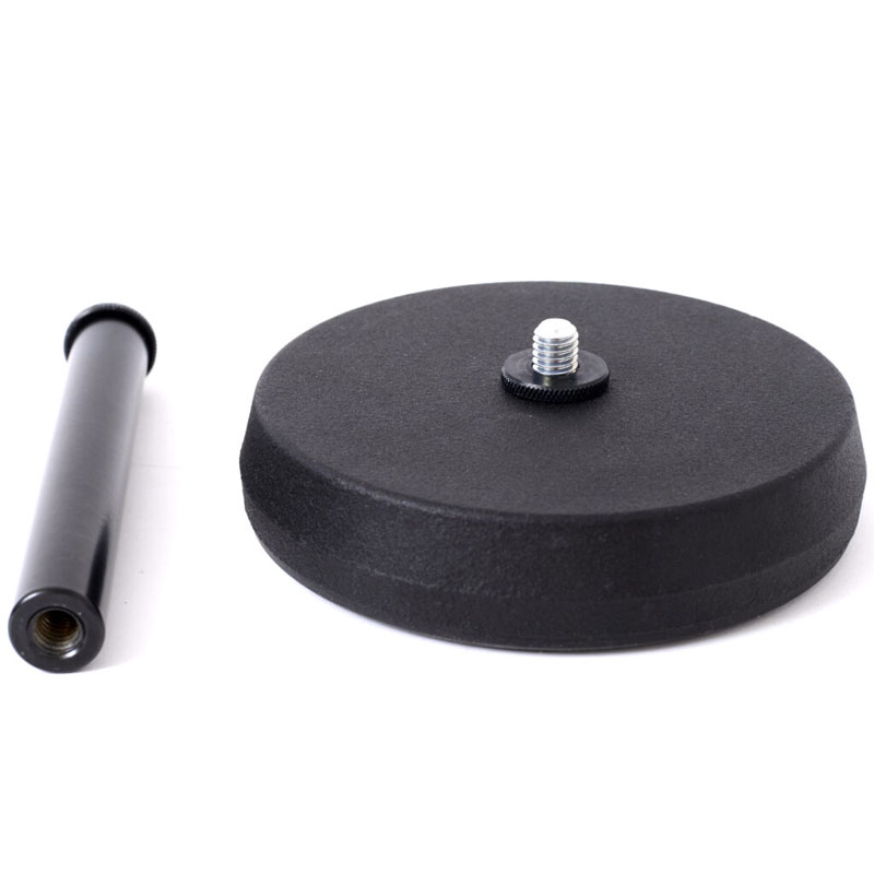 3/8"线的黑色粉面丝杆吸音铸铁底座。底座直径: 130mm 毫米,高度: 175mm 毫米,螺纹接头: 3/8",重量: 1.34kg 公斤。吸音铸铁底座,带黑色粉末涂层旋入杆,3/8" 螺纹。