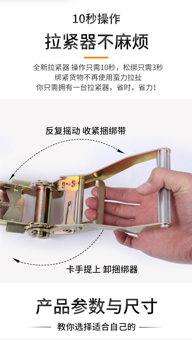货物捆绑带 集装箱固定带 涤纶棘轮拉紧器 机头钩子 紧固器